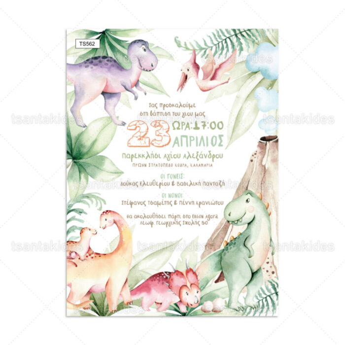 Προσκλητήριο βάπτισης για αγόρι με θέμα δεινοσαυράκια – Dinosaurs TS562.