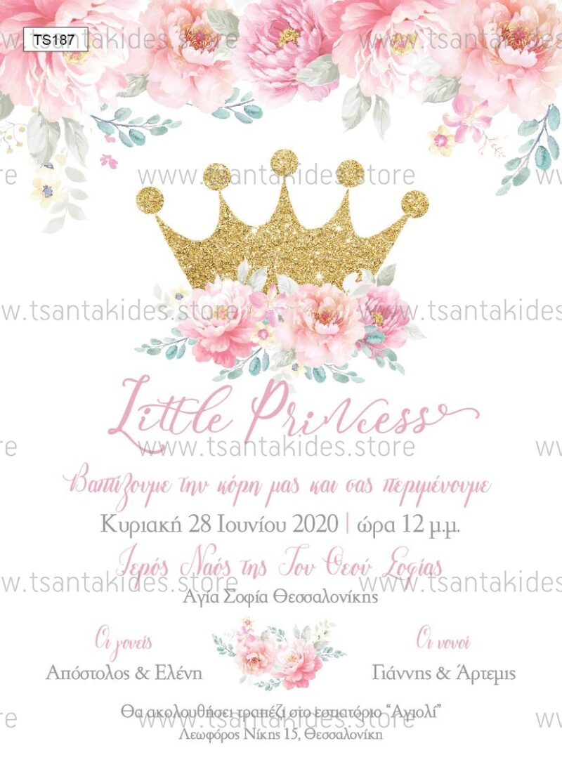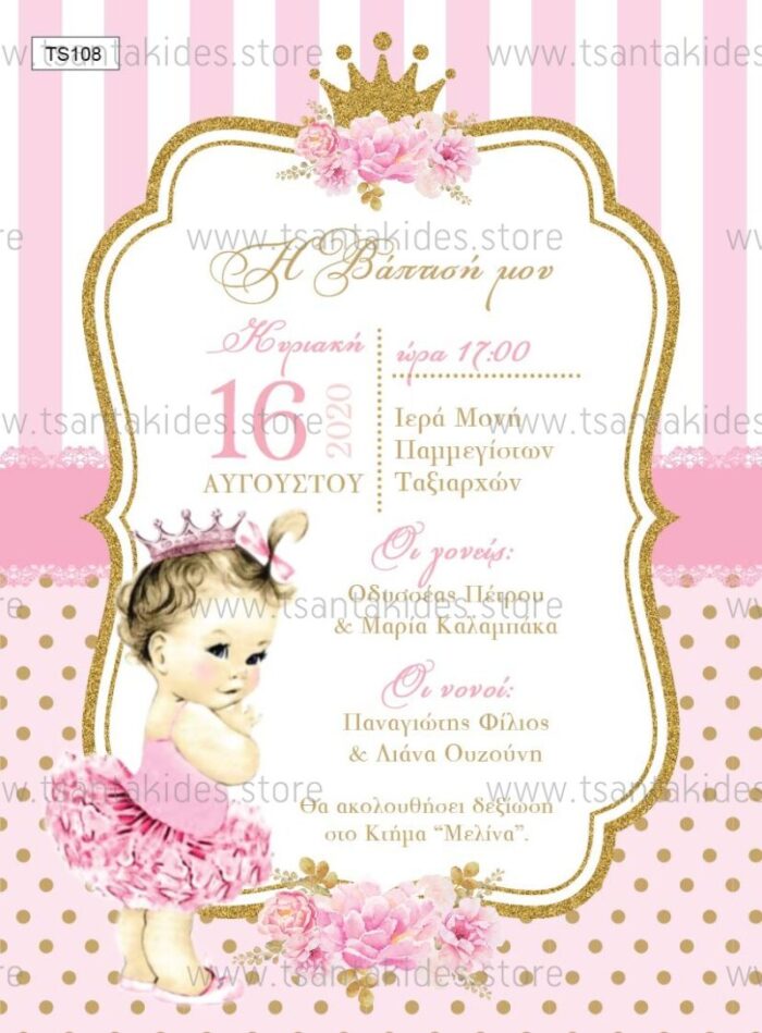 Προσκλητήριο βάπτισης για κορίτσι με θέμα μικρή πριγκίπισσα little princess TS108