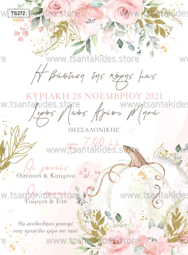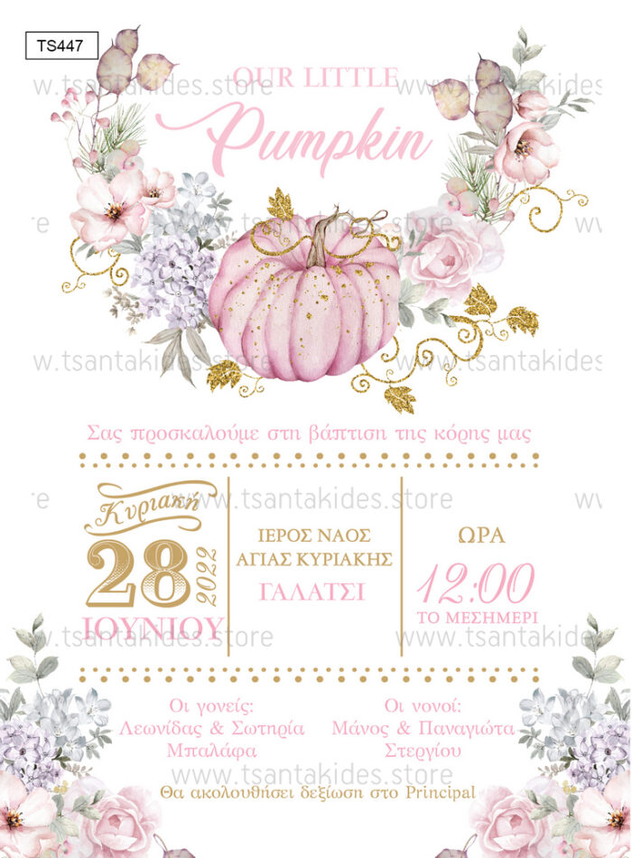 Προσκλητήριο βάπτισης για κορίτσι με θέμα κολοκύθα TS272