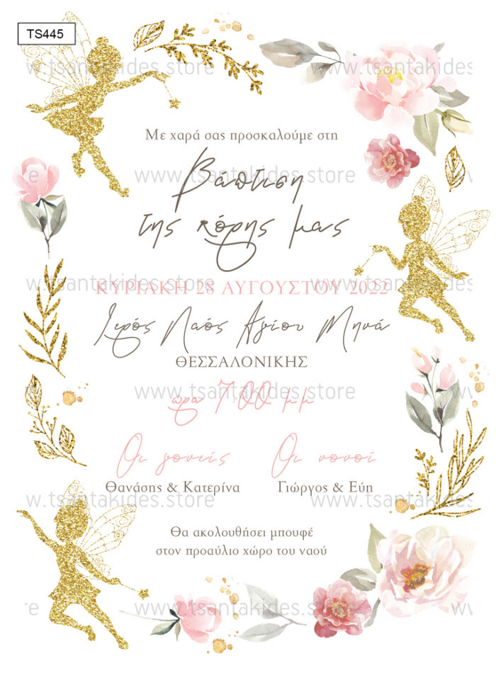 Προσκλητήριο βάπτισης για κορίτσι με θέμα Νεράιδα – Fairies TS445