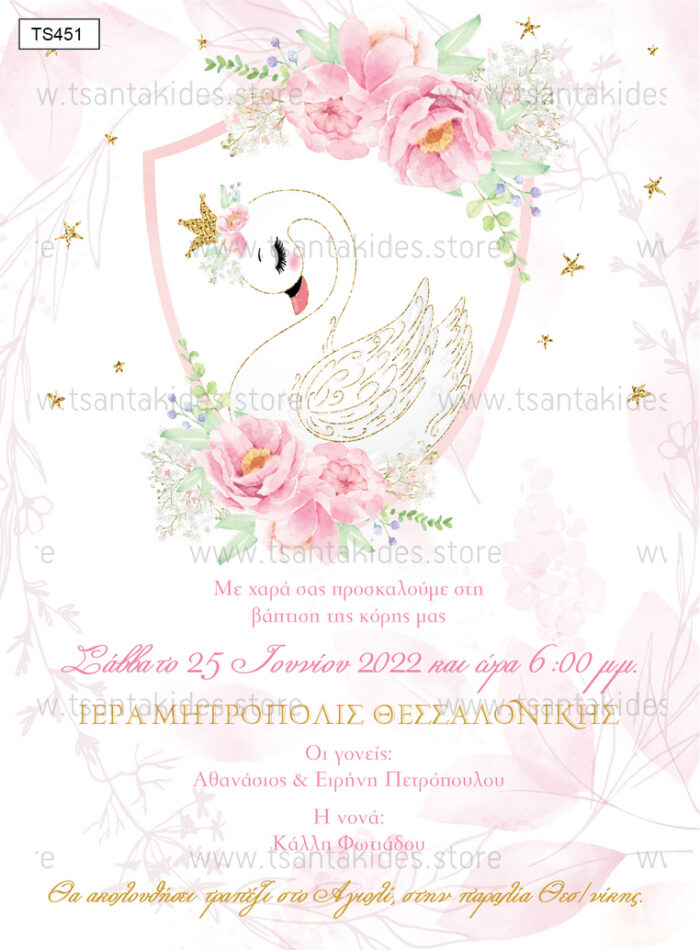 Προσκλητήριο βάπτισης για κορίτσι με θέμα Κύκνος – Royal Swan TS451