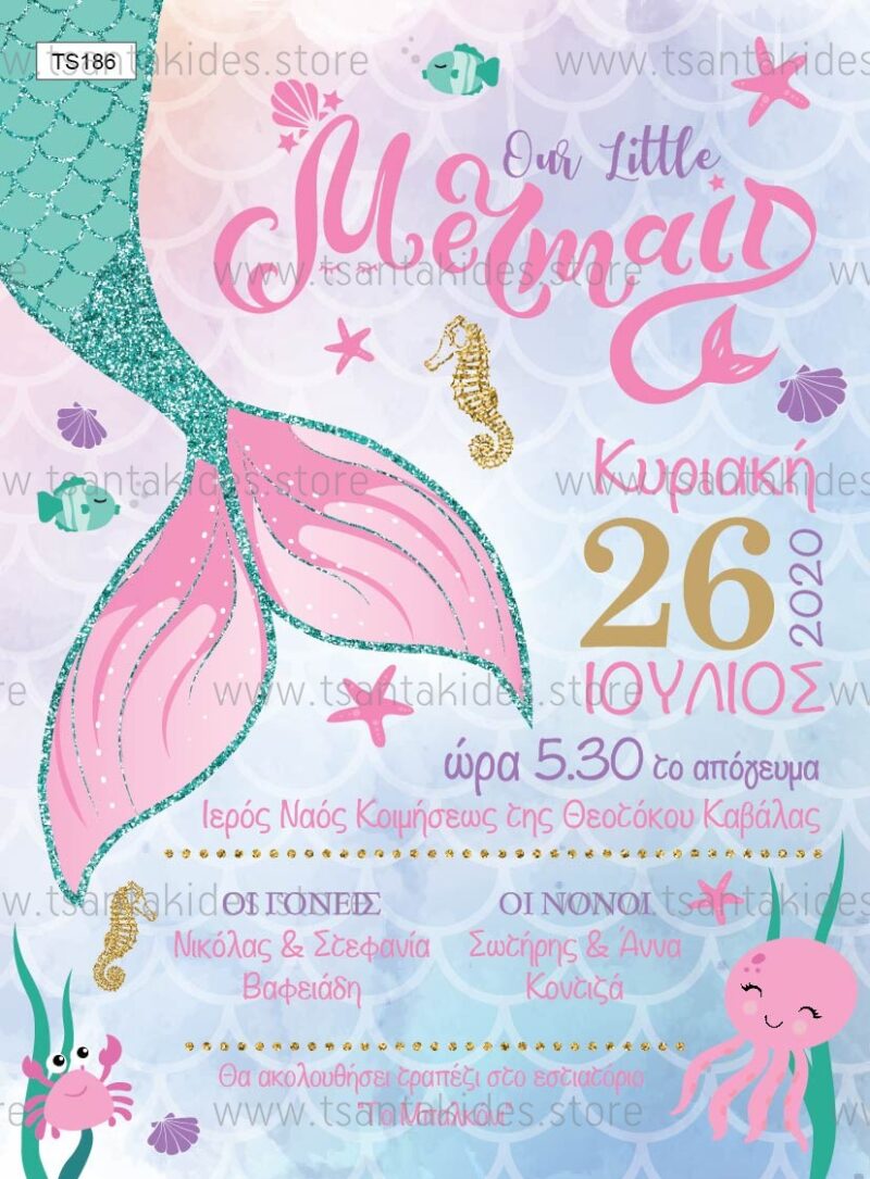 Προσκλητήριο βάπτισης για κορίτσι με θέμα τη γοργόνα TS186