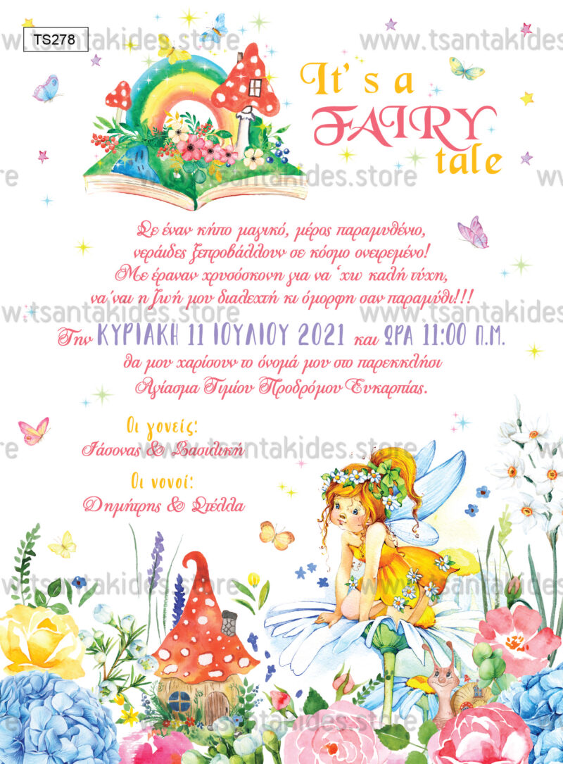 Προσκλητήριο βάπτισης για κορίτσι με θέμα Νεράιδα – Fairytale TS435