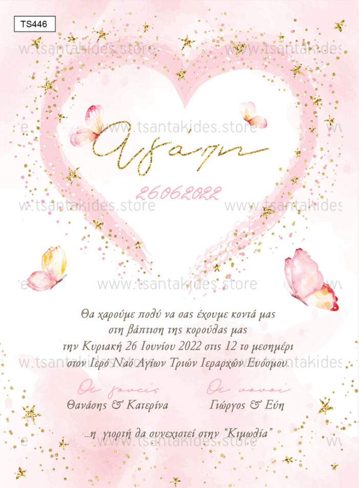Προσκλητήριο βάπτισης για κορίτσι με θέμα Πεταλούδα – Lovely Butterflies TS446