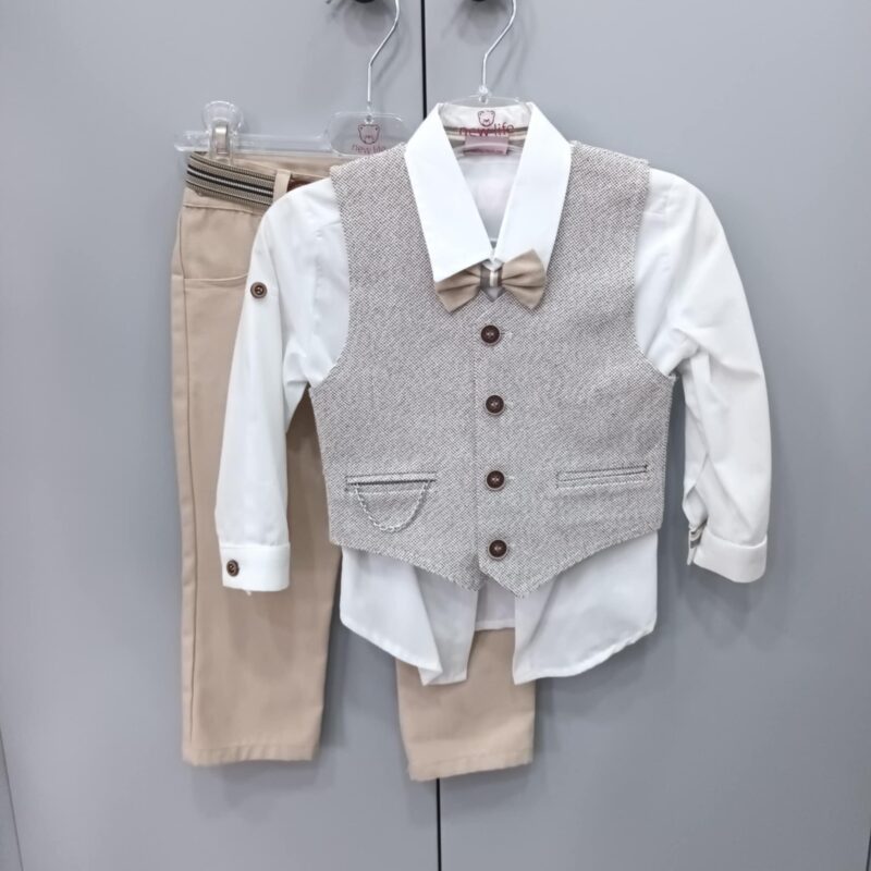 Christening outfit with trench coat pants, cotton shirt and trench coat vest New Life 2619-2