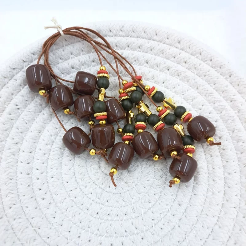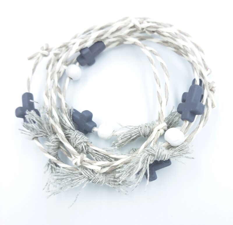 Χειροποίητα μαρτυρικά μπεγλέρι με καφέ κορδόνι , χάντρες , και χρυσό σταυρό.