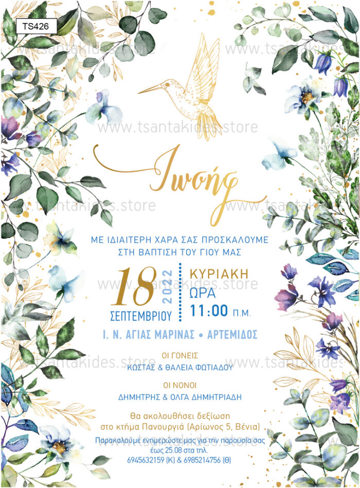 Με την ολοκλήρωση της παραγγελίας θα επικοινωνήσουμε άμεσα μαζί σας για τις λεπτομέρειες της βάπτισης (Κείμενο, Ημερομηνία-ώρα , Ιερός Ναός , ονόματα γονέων και νονού/ας , χρώμα φακέλου κτλ ) και θα σας σταλεί ηλεκτρονική μακέτα για έγκριση πριν την εκτύπωση. ΔΕΝ υπάρχει extra κόστος εκτύπωσης.