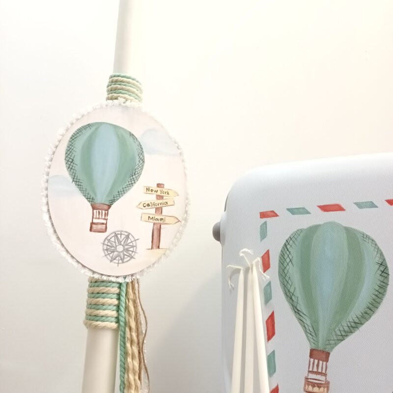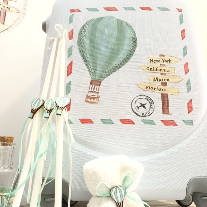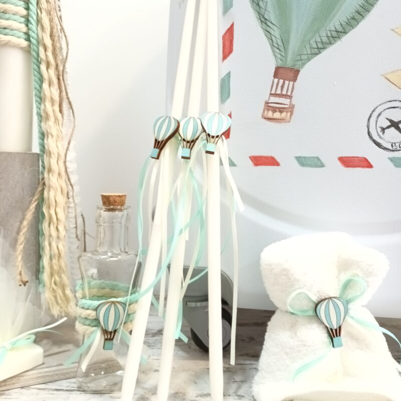 Χειροποίητο βαπτιστικό σετ με θέμα Αερόστατο- Ταξίδια