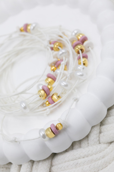 Μαρτυρικό βραχιόλι με σταυρό σε σχήμα ροδέλα, πέρλα και κεραμικές χάντρες.