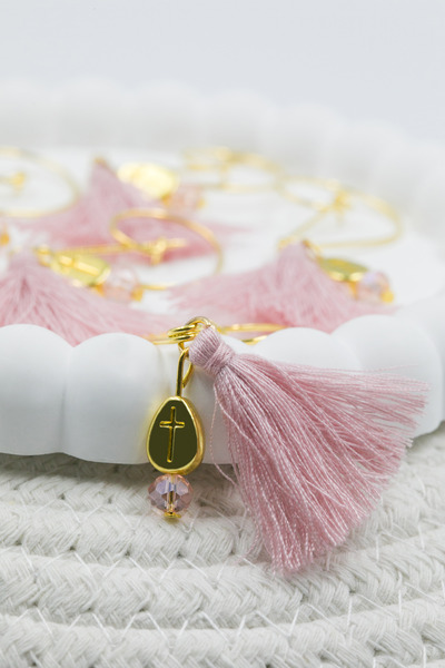 Μαρτυρικό καρφίτσα με φούντα σάπιο μήλο επιχρυσωμένος σταυρός σχήμα δάκρυ και κρύσταλλο σάπιο μήλο.