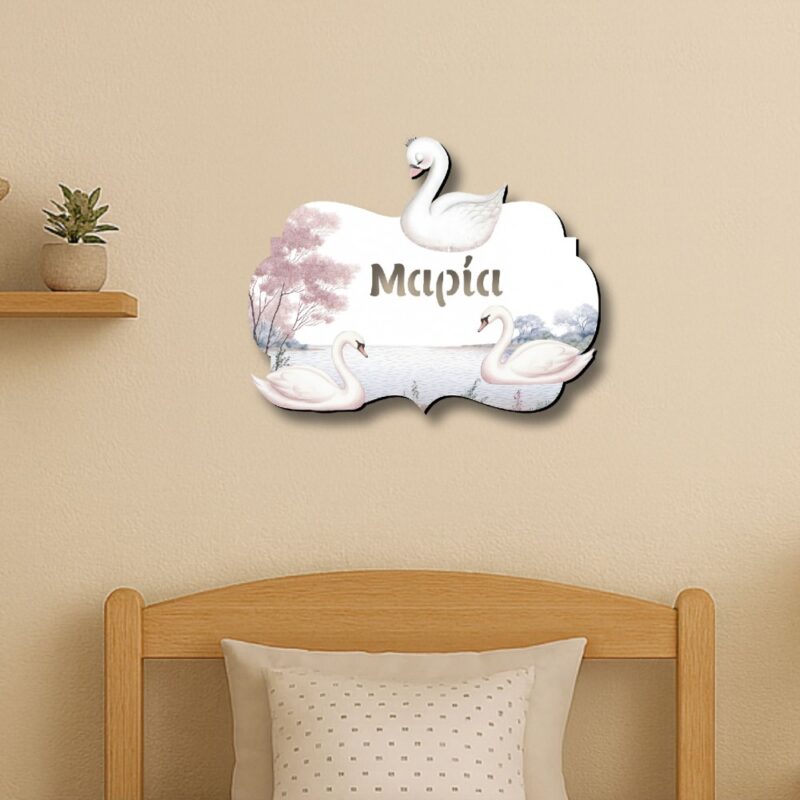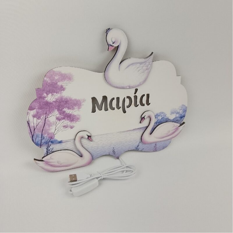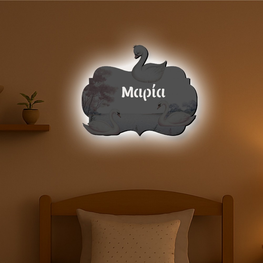 Φωτιστικό τοίχου με όνομα για παιδικό δωμάτιο με θέμα Κύκνος.