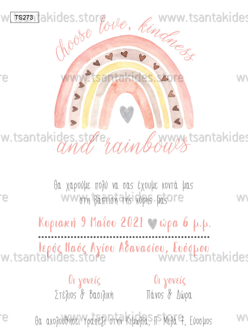 Προσκλητήριο βάπτισης για κορίτσι με θέμα pastel ουράνιο τόξο TS273