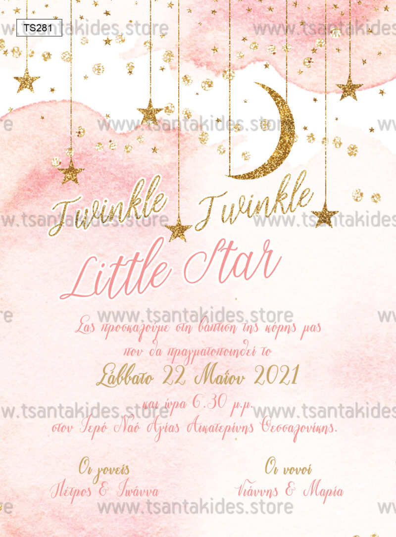 Προσκλητήριο βάπτισης για κορίτσι με θέμα twinkle little star TS281