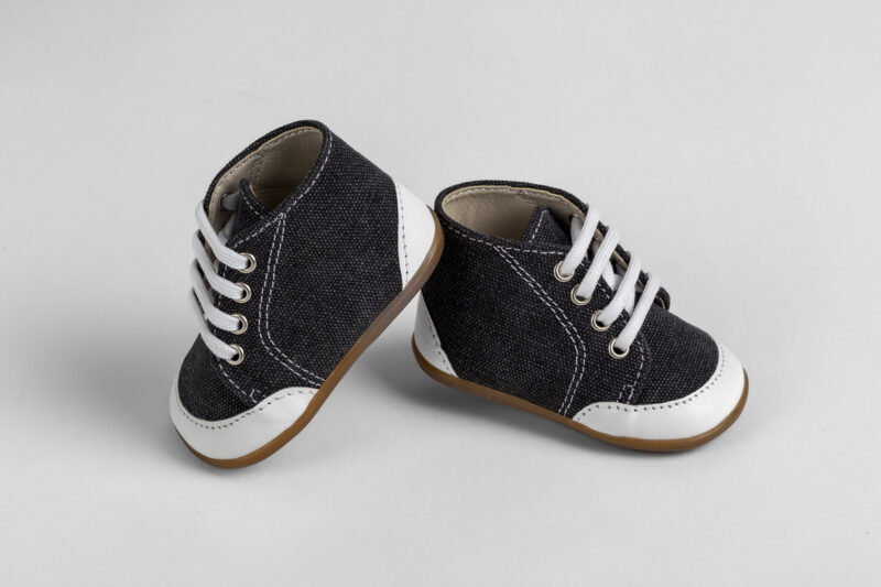 Μποτάκι για τα πρώτα βήματα σε λευκό δέρμα και μπλε καμβά.