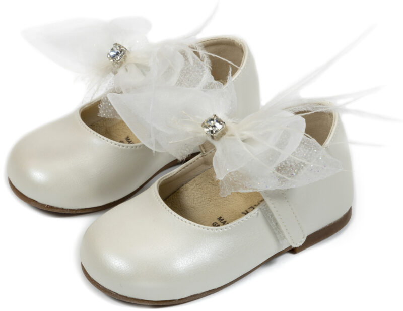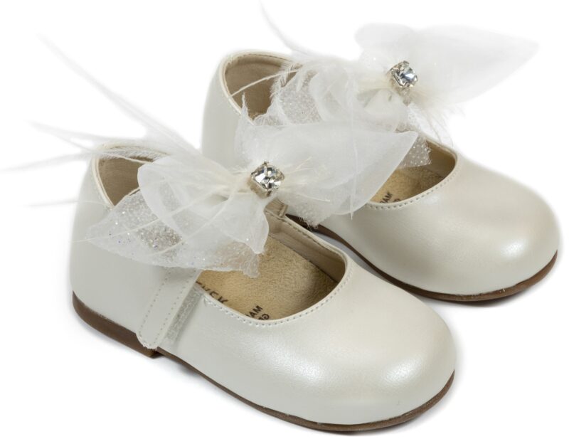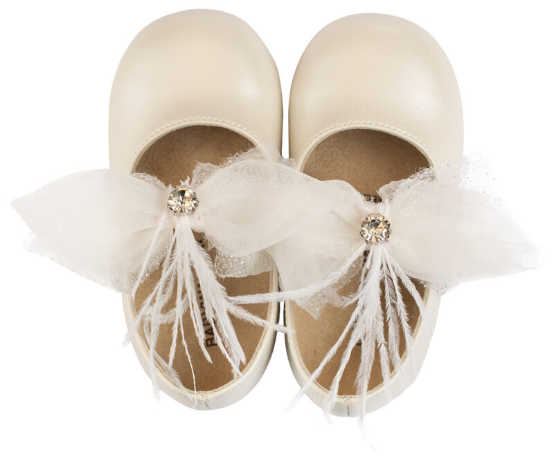 Γοβάκι μονή μπαρέτα διακοσμημένο με υφασμάτινο χειροποίητο φιόγκο σε εκρού χρώμα