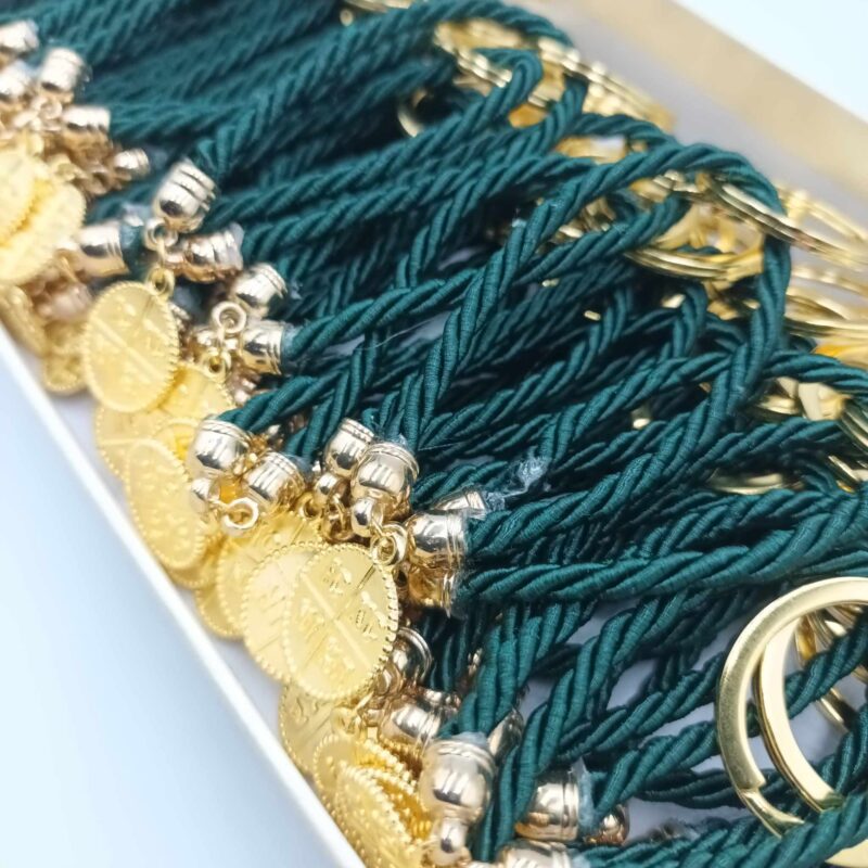Χειροποίητα μαρτυρικά βάπτισης μπρελόκ με κυπαρισσί κορδόνι και κωνσταντινάτο.