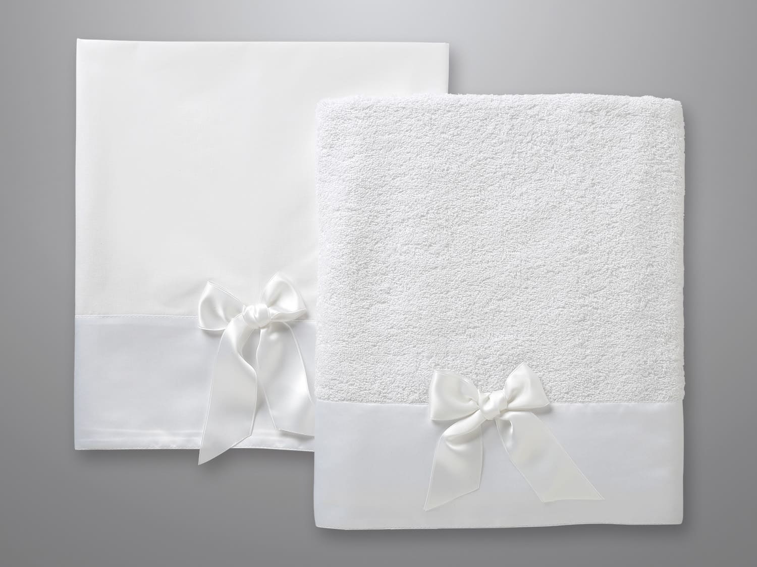 Άσπρο λαδόπανο με μεγάλη φάσα άσπρο σατέν με ραμμένο φιόγκο.