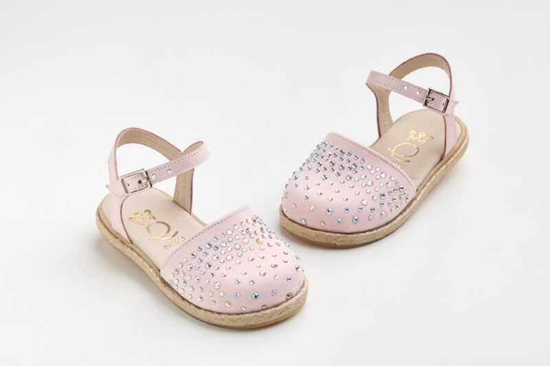 • Εσπαντρίγια περπατήματος σε dusty pink δέρμα και ροζ συνθετικό καστορ με στρας.