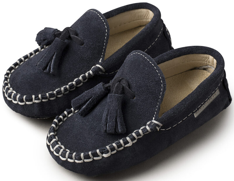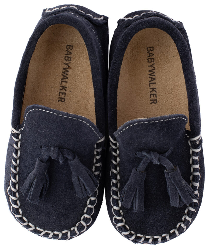 Καστόρινο μοκασίνι με φουντάκια Suede σε μπλε χρώμα.