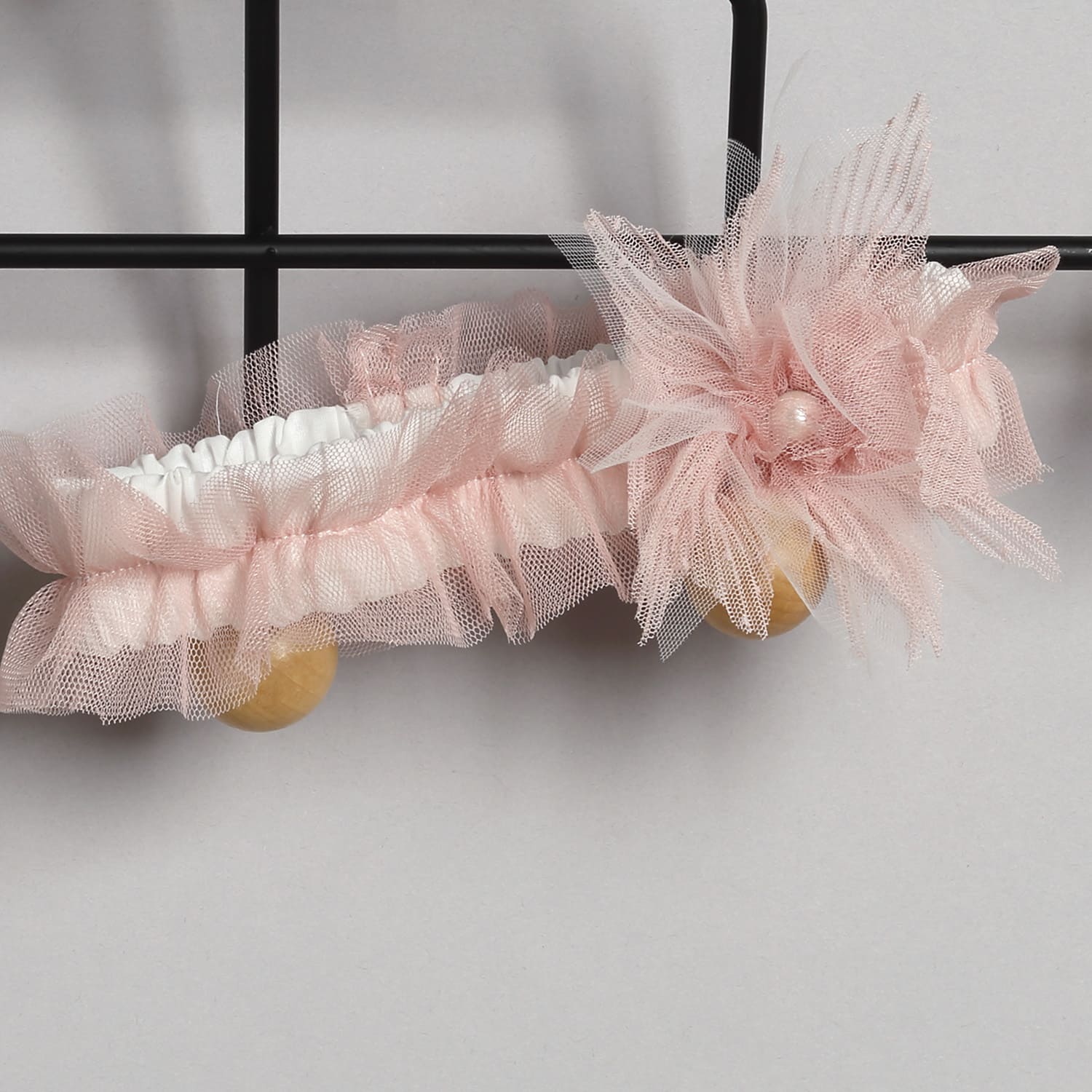 Κορδέλα από σάπιο μήλο τούλι στολισμένη με λουλούδι από πλισέ τούλι.