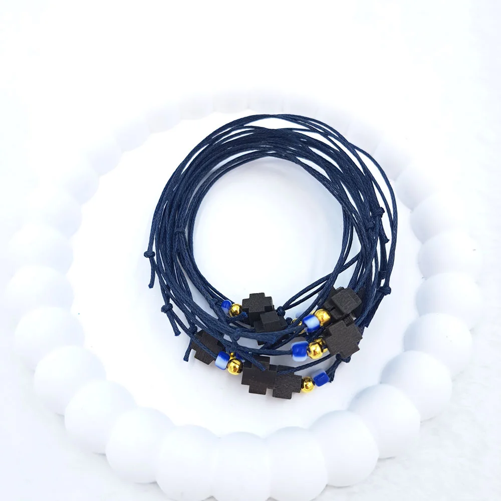 Μαρτυρικό βραχιόλι βάπτισης σε μπλε χρώμα , χάντρες & σταυρό.