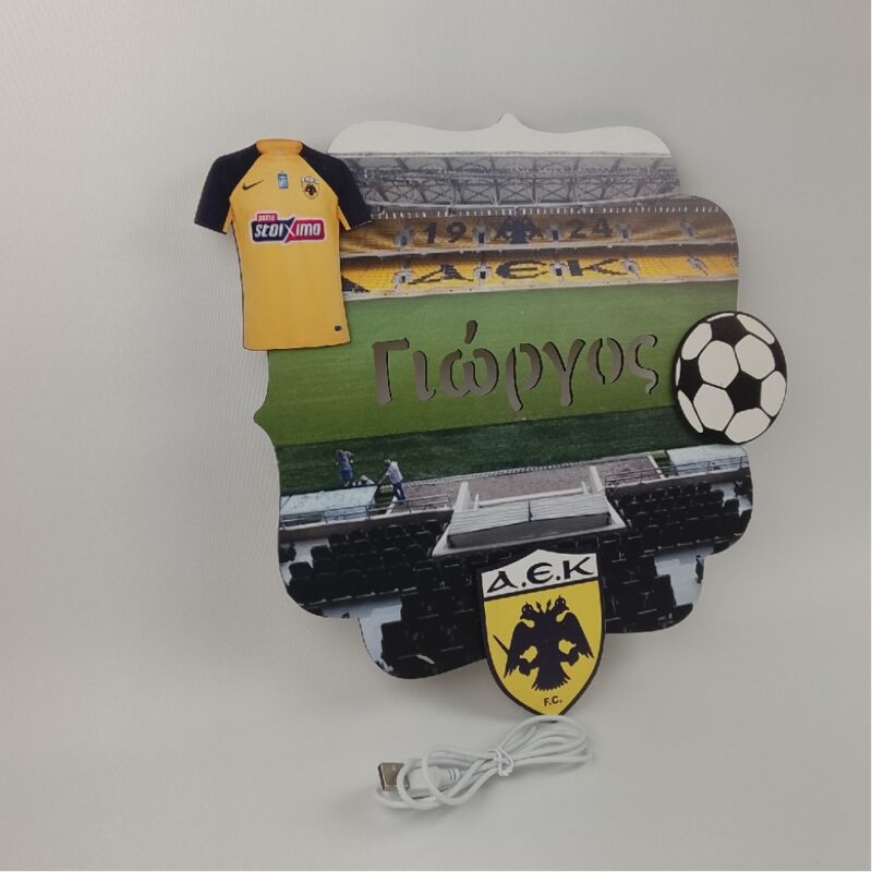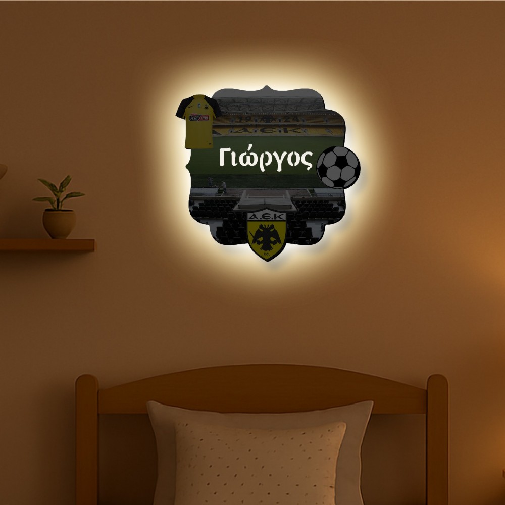 Φωτιστικό τοίχου με όνομα για παιδικό δωμάτιο με θέμα AEK